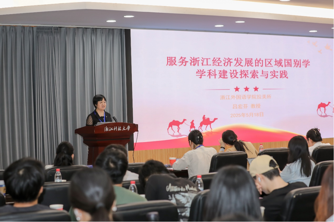 5月18日,拉美研究所所长吕宏芬受邀出席在浙江科技大学召开的“百年变局与文明互鉴:区域国别学的机遇与挑战”研讨会,并作了题为《服务浙江经济发展的区域国别学学科建设探索与实践》的主题分享。